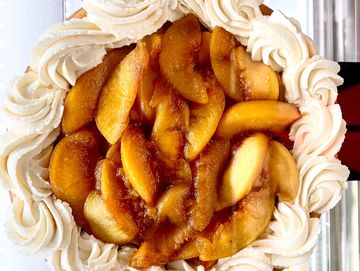 Brown sugar cheesecake, classic crust, fresh seasonal peaches, Wild Turkey bourbon, whipped cream