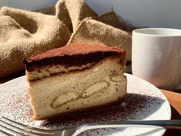 Coffee and Kahlua cheesecake, house made ladyfingers, tiramisu cream, cocoa powder