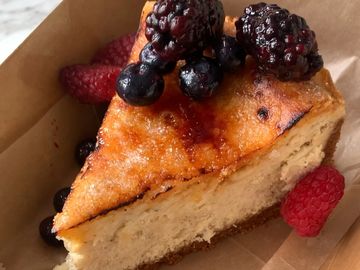 Vanilla bean cheesecake, classic crust, bruleed top, fresh berries available on the side